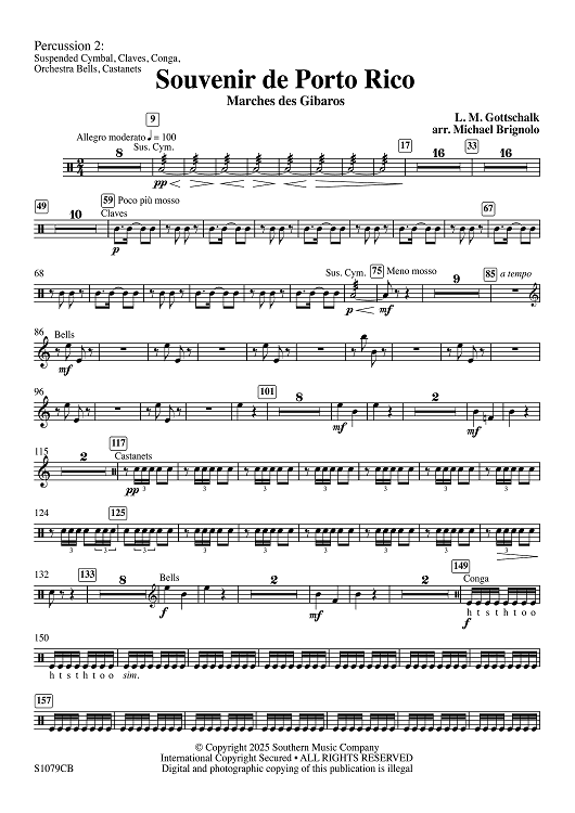 Digital Sheet Music for Souvenir de Porto Rico - Percussion 2 by Louis Moreau Gottschalk, Michael Brignolo scored for Concert Band; id:508116