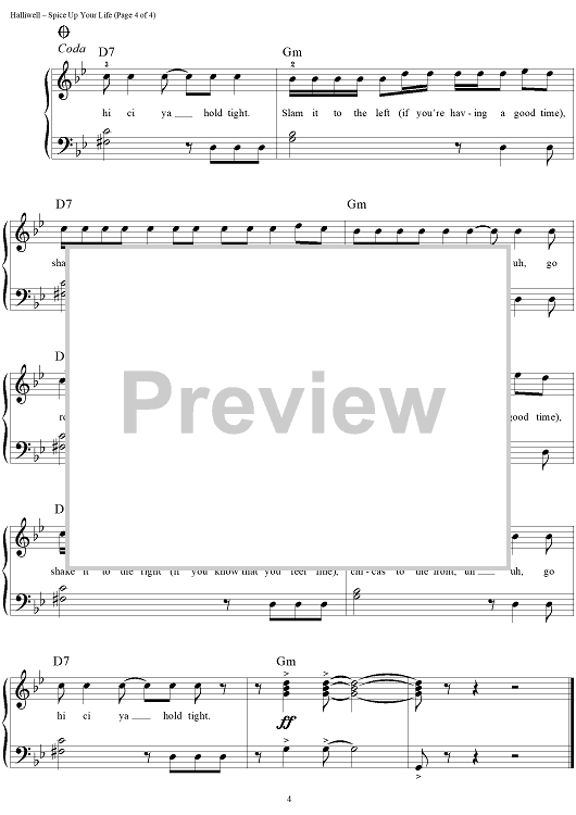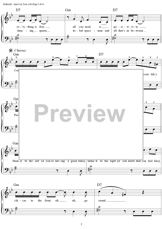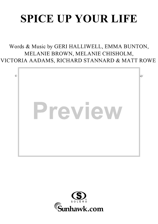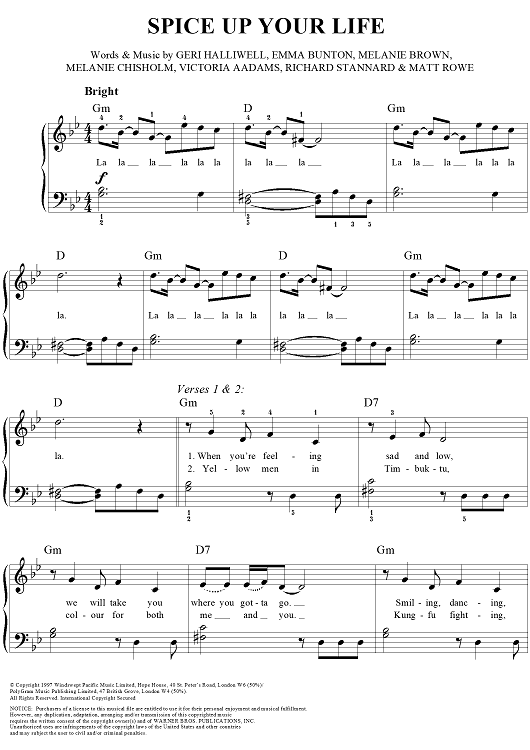 Digital Sheet Music for Spice Up Your Life by Emma Bunton, Victoria Addams, Melanie Brown, Mel C, Geri Halliwell, Matt Rowe, Richard Stannard, Stephen Duro, Spice Girls scored for Easy Piano/Vocal; id:236484