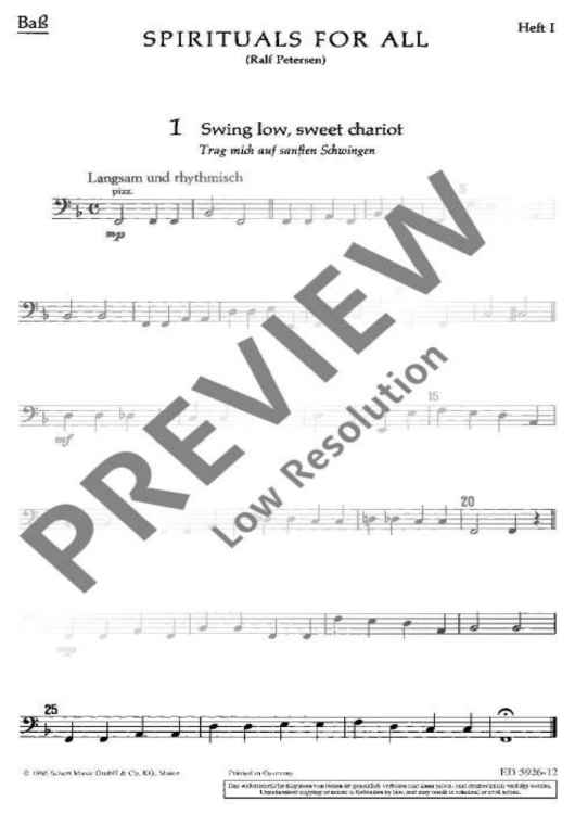 Digital Sheet Music for Spirituals for all - Bass by scored for Mixed Choir (satb) With Combo (piano, Guitar, Bass); id:473505