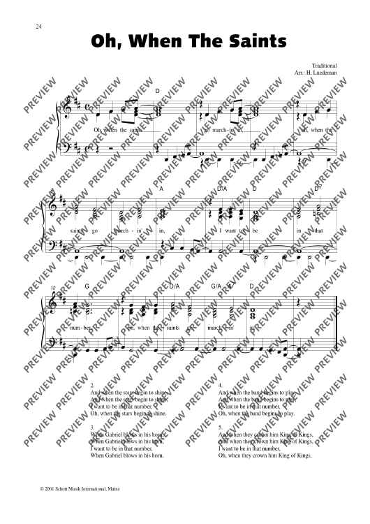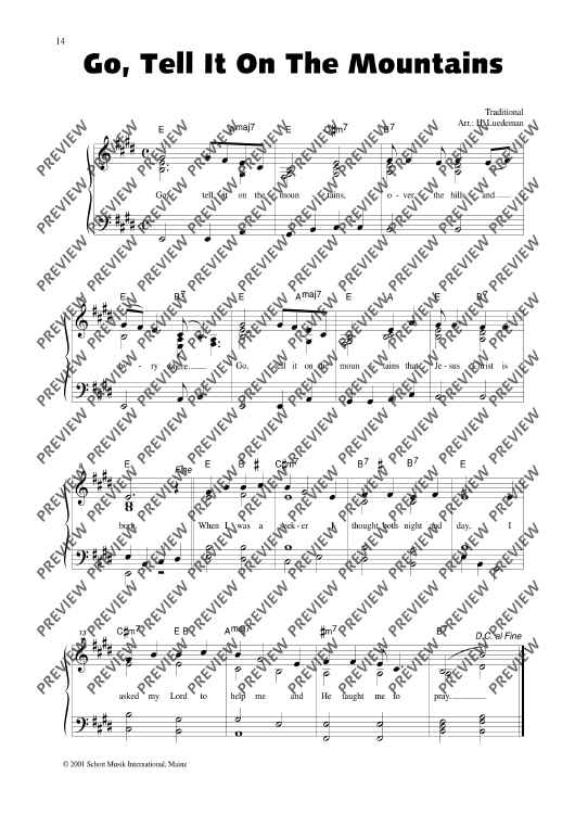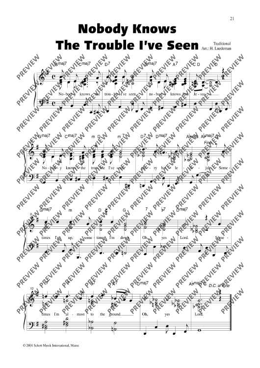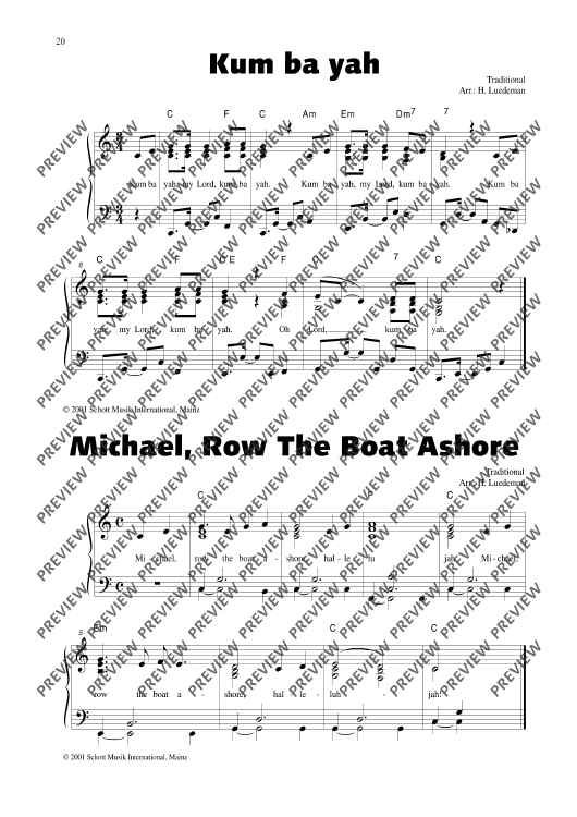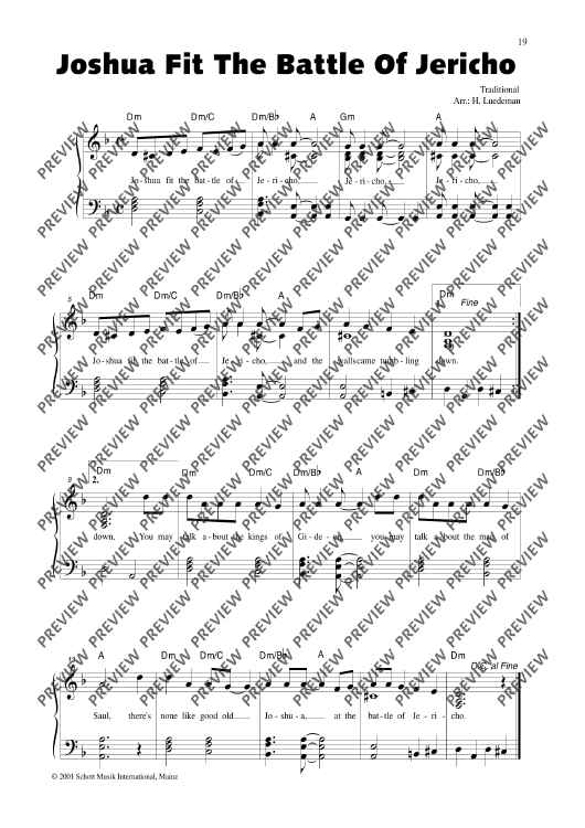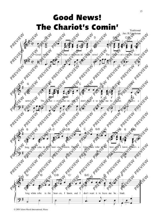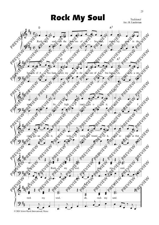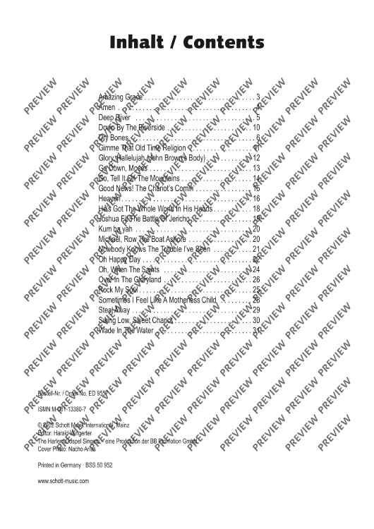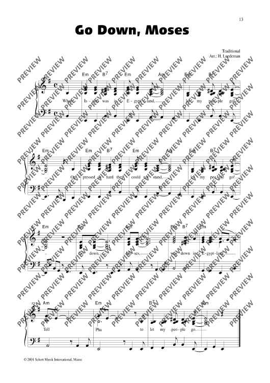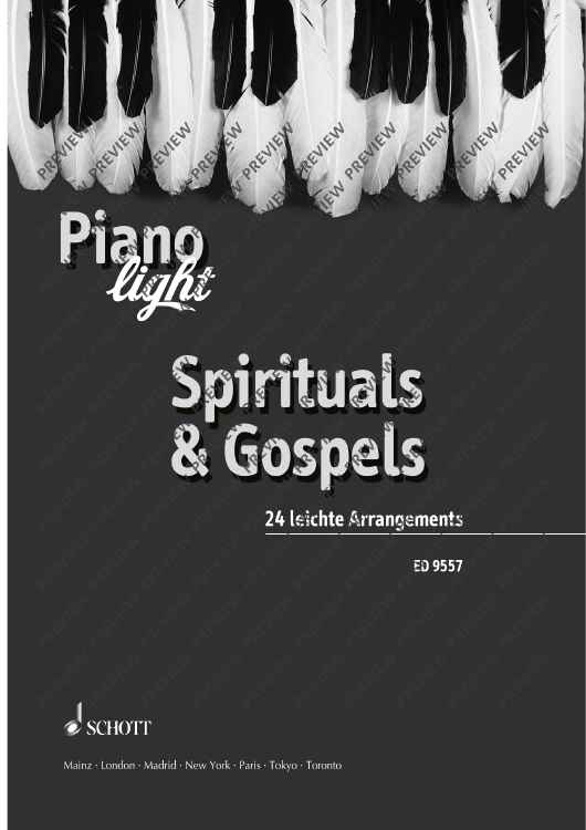 Catch the infectious enthusiasm of Spirituals and Gospel songs: you'll find a collection of the most popular pieces in easy and effective arrangements in the latest volume in the 'Piano light' series. Experience the joys and laments of this typically Afro-American music for yourself, playing 'classics' such as Glory, Hallelujah - Go Down, Moses - Go, Tell It On The Mountain - He’s Got The Whole World In His Hands - Nobody Knows The Trouble I’ve Seen - Oh, Happy Day - Sometimes I Feel Like A Motherless Child - Swing Low, Sweet Chariot - Amazing Grace - Down By The Riverside, etc.