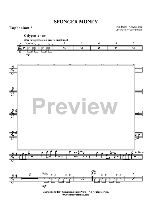 Digital Sheet Music for Sponger Money - Euphonium 2 BC/TC by Gary Buttery, Traditional scored for Tuba Quartet; id:416515