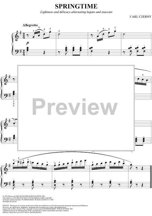 Digital Sheet Music for Springtime by Carl Czerny scored for Easy Piano; id:295762