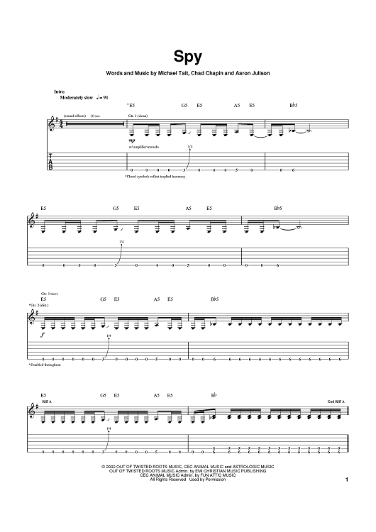 Digital Sheet Music for Spy by Chad Chapin, Aaron Julison, Tait, Michael Tait scored for Guitar Tab; id:372554
