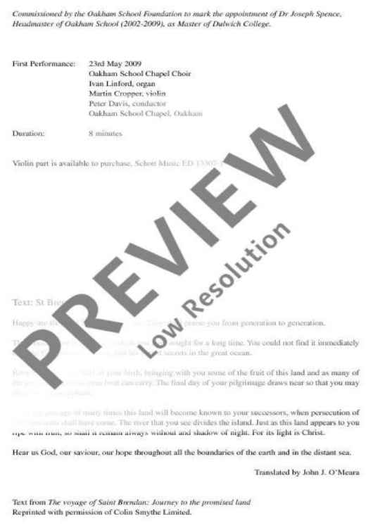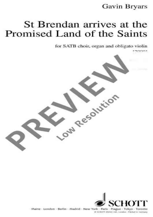 Digital Sheet Music for St. Brendan arrives at the Promised Land of the Saints - Choral Score by Gavin Bryars scored for Mixed Choir (satb), Organ And Violin; id:483907