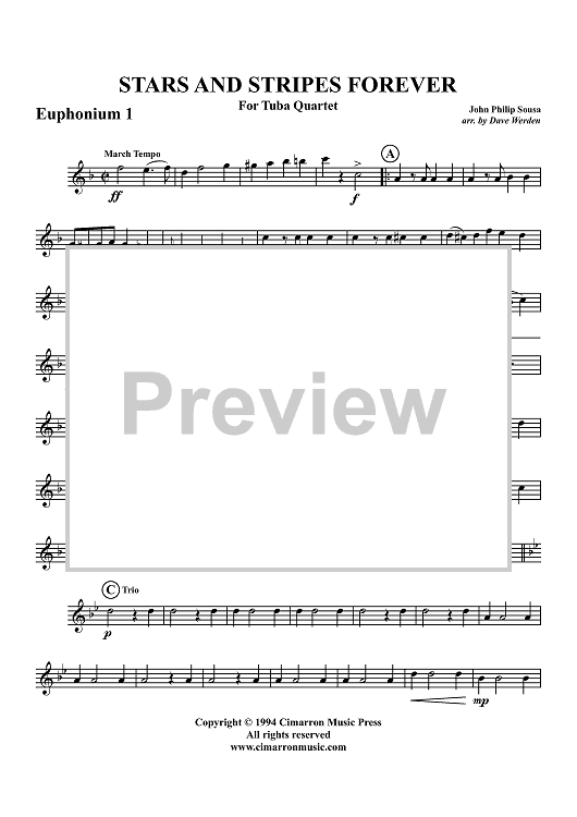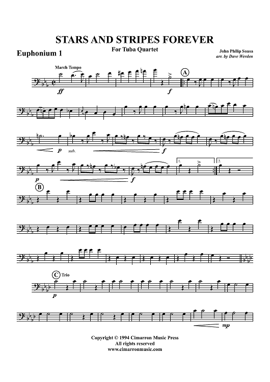 Digital Sheet Music for Stars and Stripes Forever - Euphonium 1 BC/TC by John Philip Sousa, David Werden scored for Tuba Quartet; id:311656
