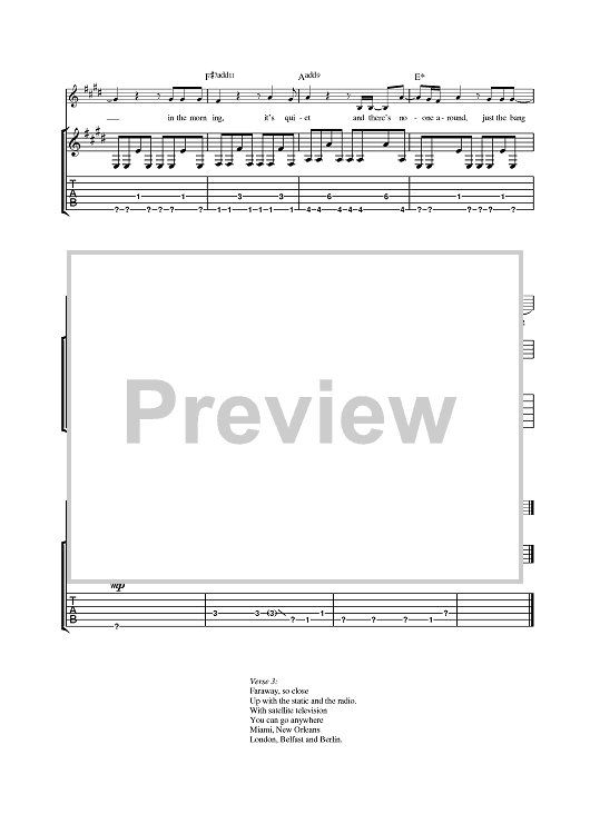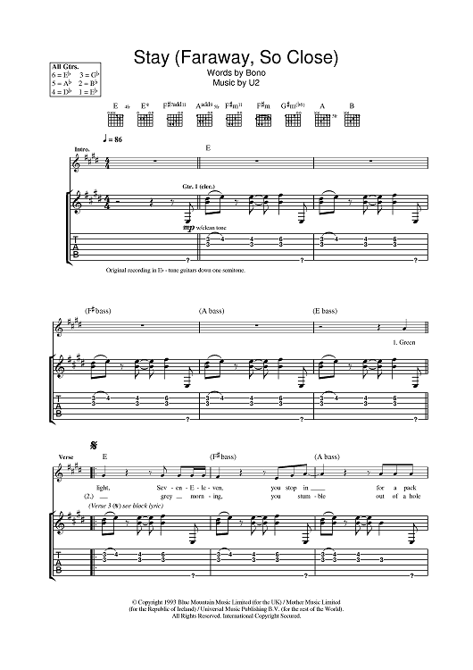 Digital Sheet Music for Stay (Faraway, So Close) by U2 scored for Guitar Tab; id:376972