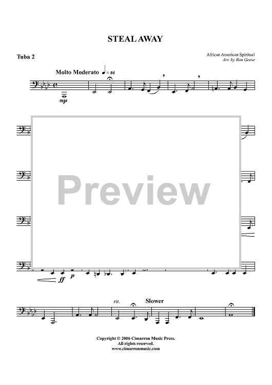 Digital Sheet Music for Steal Away - Tuba 2 by Ron Geese, African American Spiritual scored for Tuba Quartet; id:360283