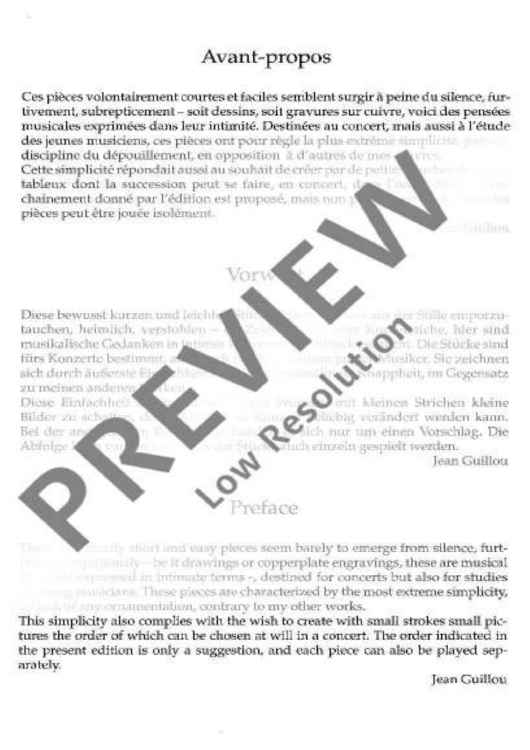 Jean Guillou is one of the most significant contemporary organ virtuosos and composers for the instrument. A student of Dupré, Duruflé and Messiaen, he is the personification of the great and living French organ tradition. ‘Furtive Pieces’ are 10 short compositions of easy to medium difficulty, to be played individually or arranged into little suites. The publication date is timed to coincide with the 70th birthday of Jean Guillou on 20 April 2000.