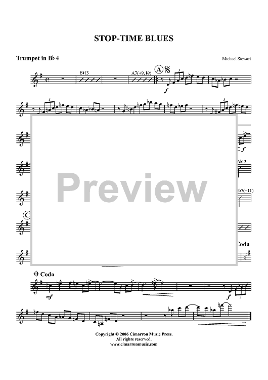 "Stop-Time Blues - B-flat Trumpet 4" Sheet Music by Michael Stewart