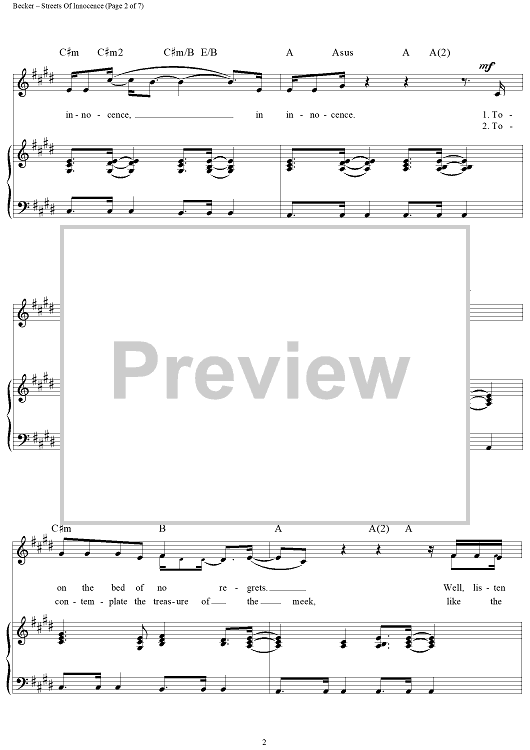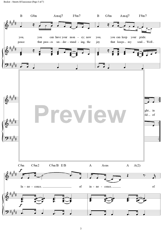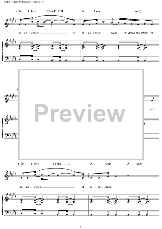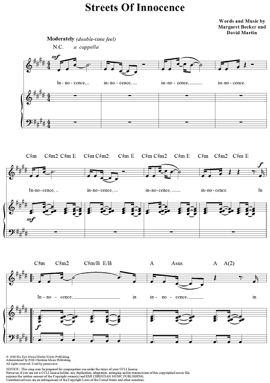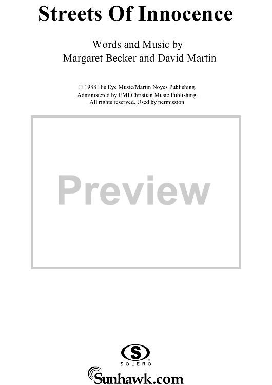 "Streets of Innocence" Sheet Music by Margaret Becker