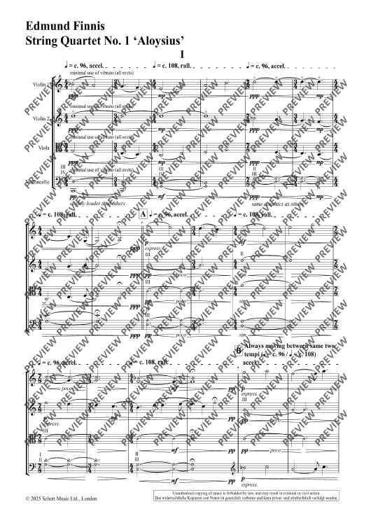 "String Quartet No. 1 'Aloysius' - Score and Parts" Sheet Music by Edmund Finnis
