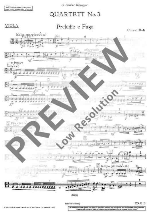 Digital Sheet Music for String Quartet No. 3 - Set of Parts by Conrad Beck scored for String Quartet; id:492001