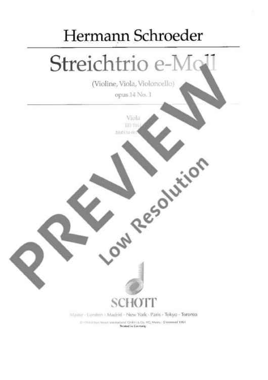 Digital Sheet Music for String trio E Minor - Set of Parts by Hermann Schroeder scored for Violin, Viola And Cello; id:472788