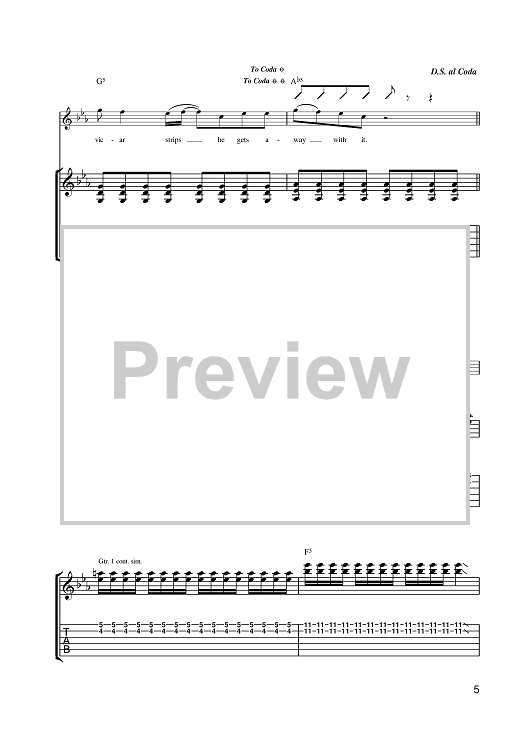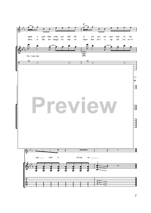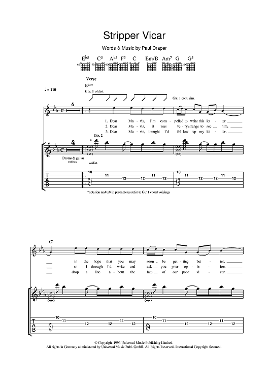 Digital Sheet Music for Stripper Vicar by Paul Draper, Mansun scored for Guitar Tab; id:401338