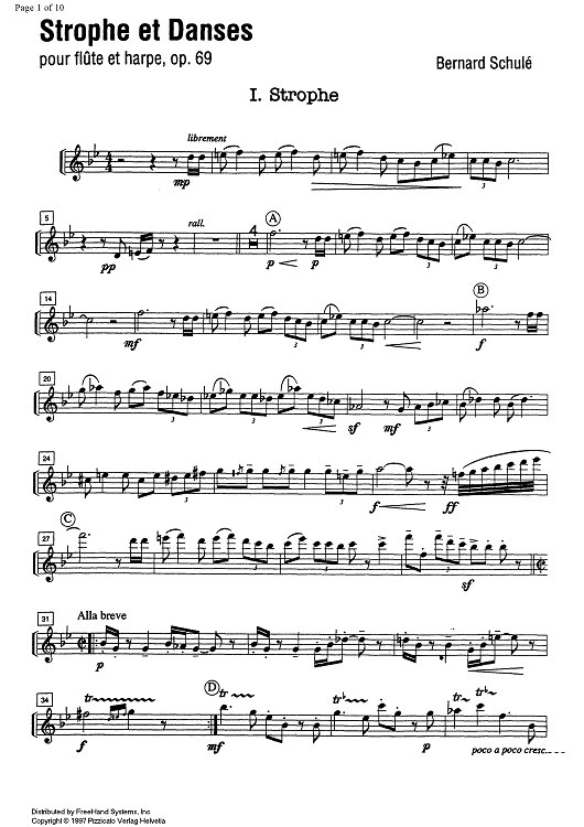 Digital Sheet Music for Strophe et Danses Op.69 - Flute by Bernard Schulé scored for Flute/Harp; id:329974