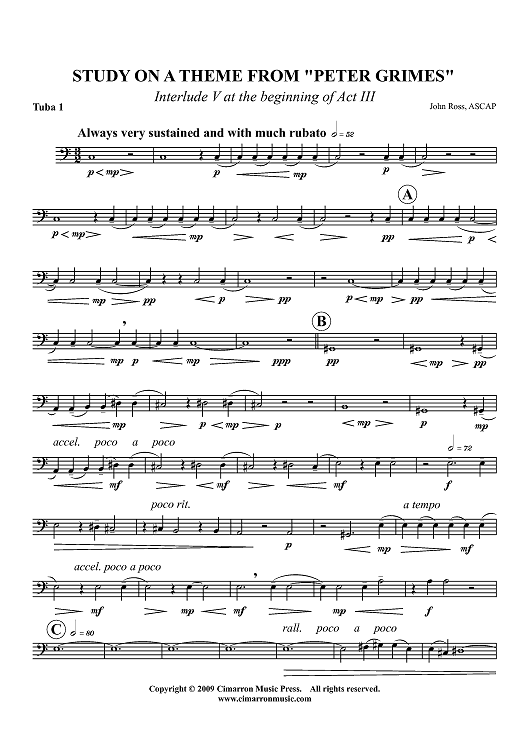 "Study on a theme from "Peter Grimes" - Tuba 1" Sheet Music by John Ross