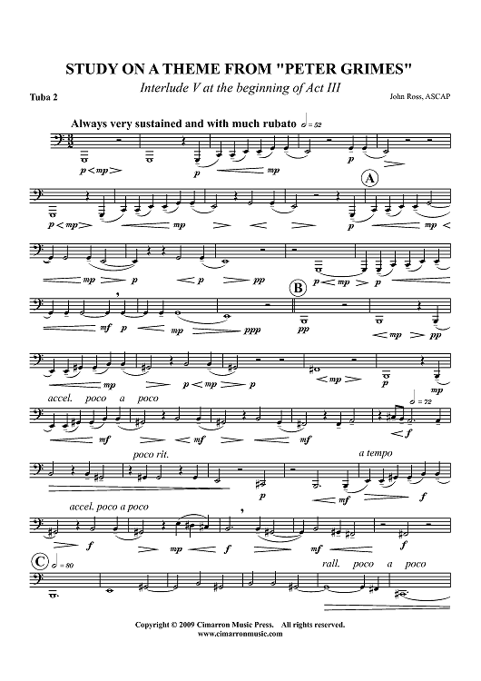 "Study on a theme from "Peter Grimes" - Tuba 2" Sheet Music by John Ross