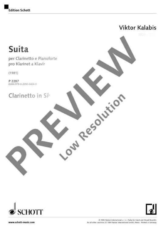 Digital Sheet Music for Suita by Viktor Kalabis scored for Clarinet And Piano; id:491381