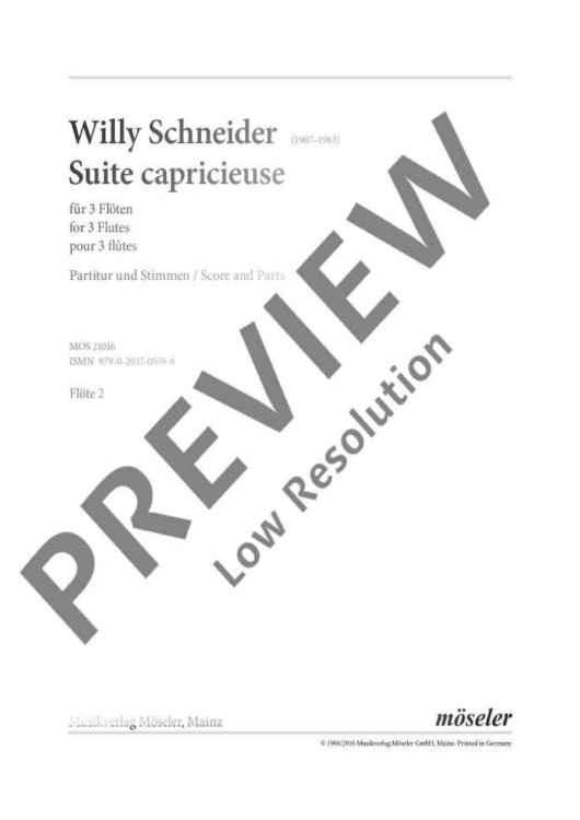 Digital Sheet Music for Suite capricieuse - Score and Parts by Willy Schneider scored for 3 Flutes; id:493428
