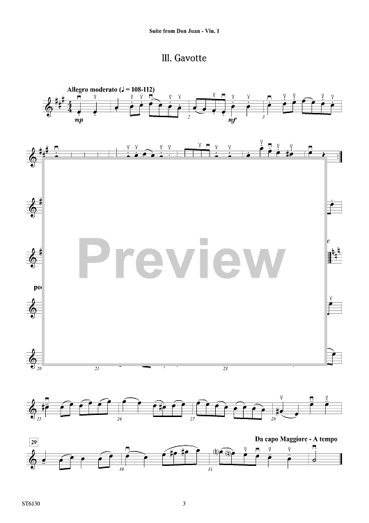 "Suite from Don Juan - Violin 1" Sheet Music by Christoph Willibald Glück