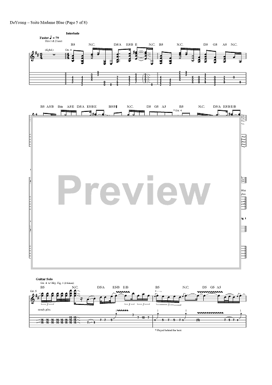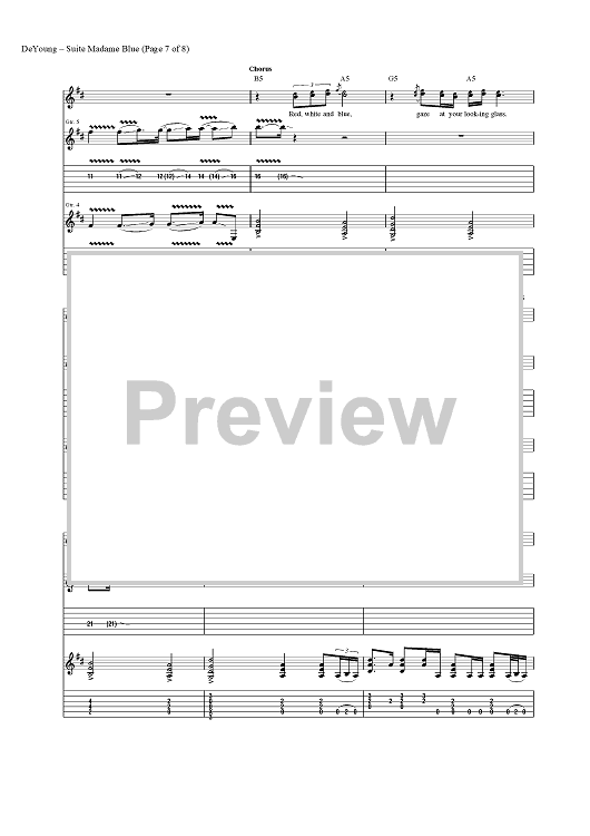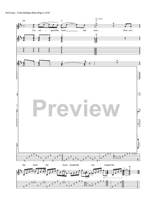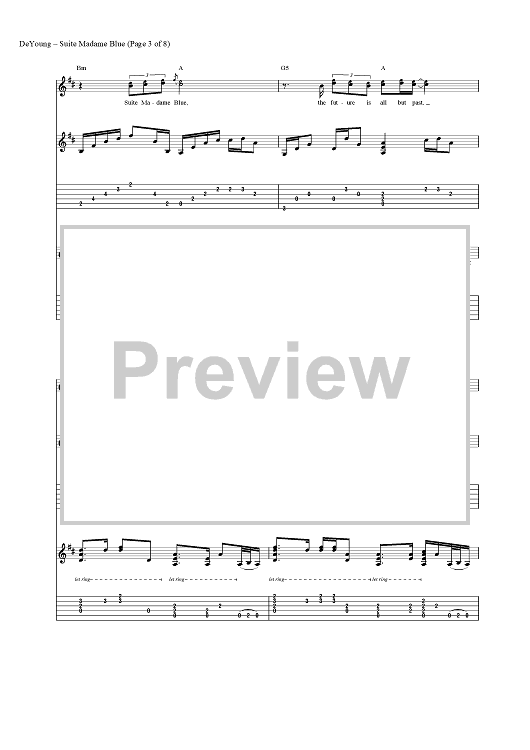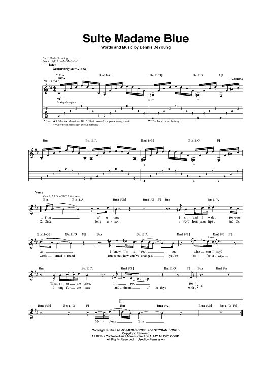Digital Sheet Music for Suite Madame Blue by Styx, Dennis DeYoung scored for Guitar Tab/Vocal; id:452310