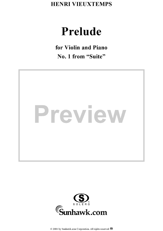 Digital Sheet Music for Suite, No. 1: Prelude - Piano Score by Henri Vieuxtemps scored for Violin/Piano; id:264754