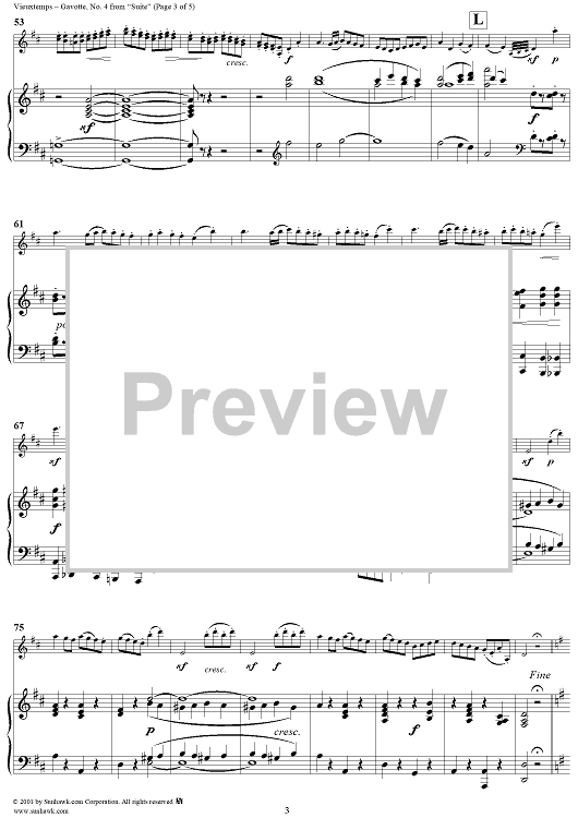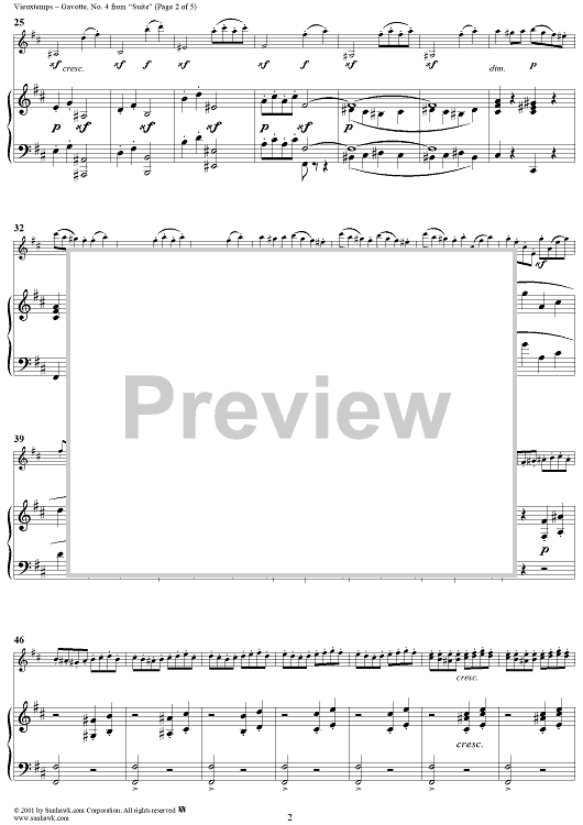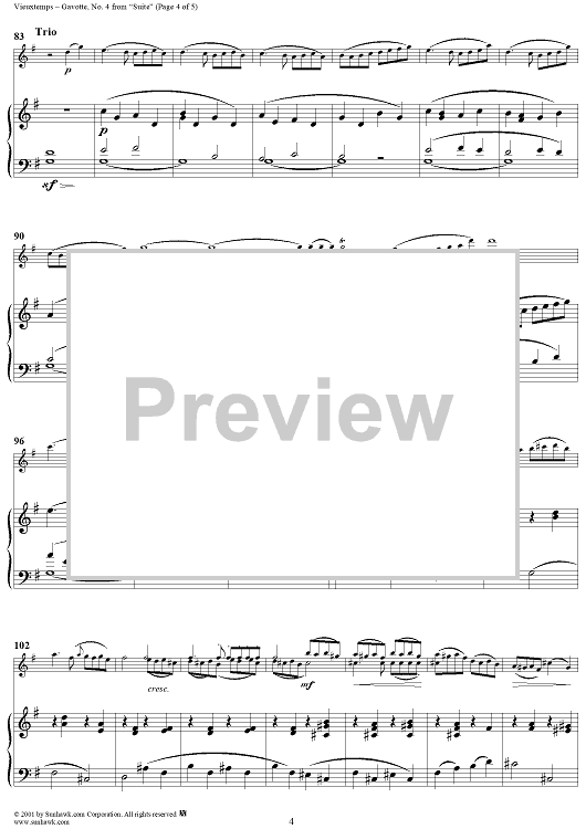 Digital Sheet Music for Suite, No. 4: Gavotte - Piano Score by Henri Vieuxtemps scored for Violin/Piano; id:264762