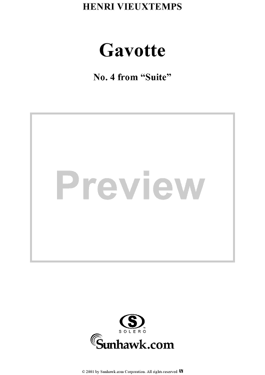 "Suite, No. 4: Gavotte - Piano Score" Sheet Music by Henri Vieuxtemps