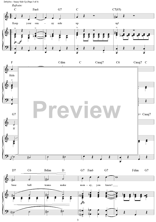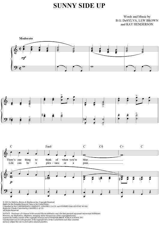 Digital Sheet Music for Sunny Side Up by Ray Henderson, Lew Brown, Buddy DeSylva scored for Piano/Vocal/Chords; id:305419