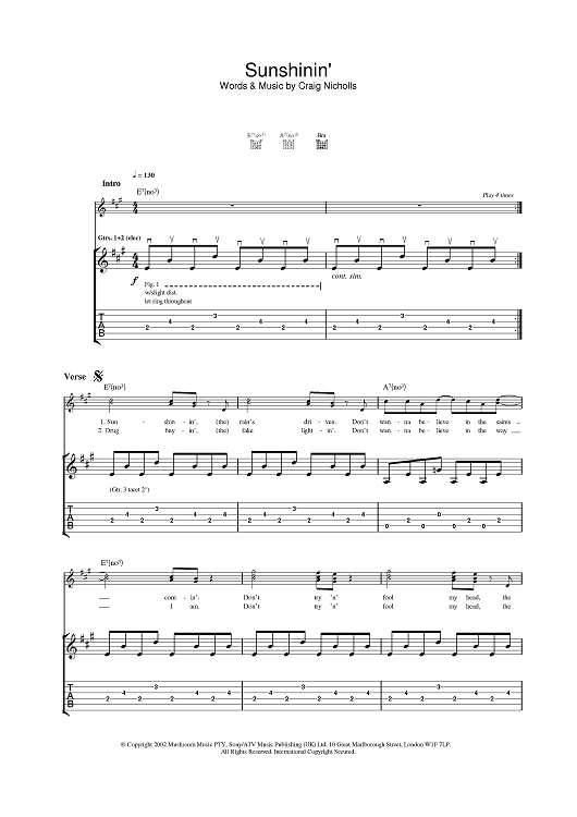 Digital Sheet Music for Sunshinin' by The Vines scored for Guitar Tab; id:377655