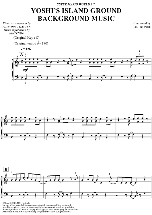 "Super Mario World 2™: Yoshi's Island Ground Background Music" Sheet Music by Koji Kondo