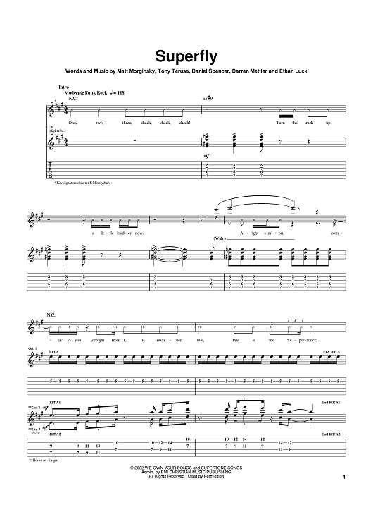 Digital Sheet Music for Superfly by Darren Mettler, Matt Morginsky, The O.C. Supertones, Tony Terusa scored for Guitar Tab; id:372540