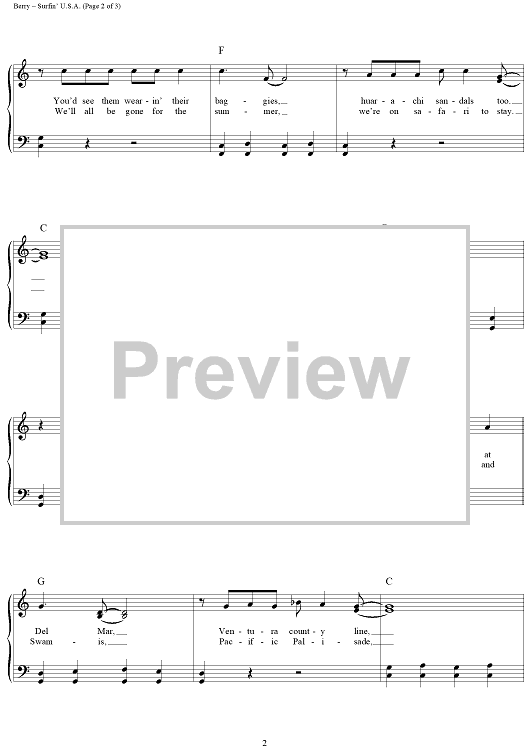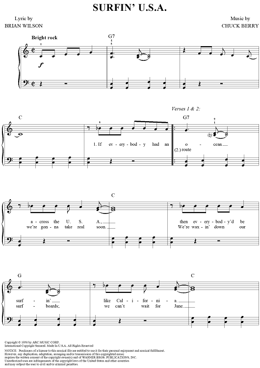 Digital Sheet Music for Surfin' U.S.A. by Brian Wilson, The Beach Boys, Chuck Berry scored for Easy Piano/Vocal; id:275394