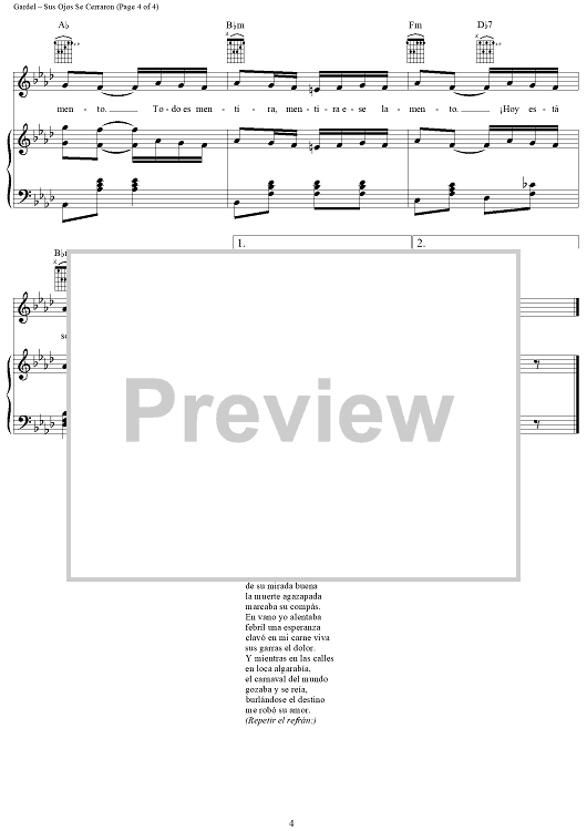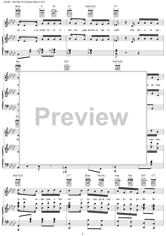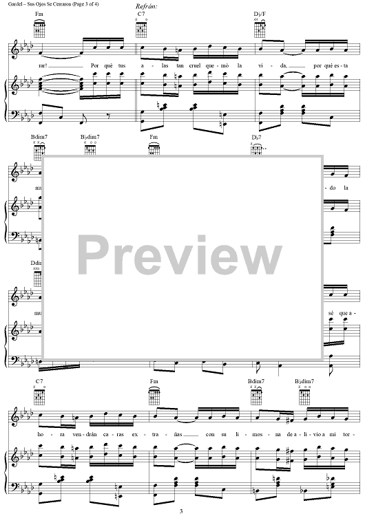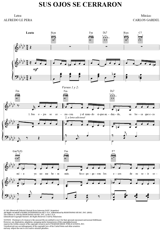 Digital Sheet Music for Sus Ojos Se Cerraron by Carlos Gardel, Alfredo Le Pera scored for Piano/Vocal/Chords; id:311951