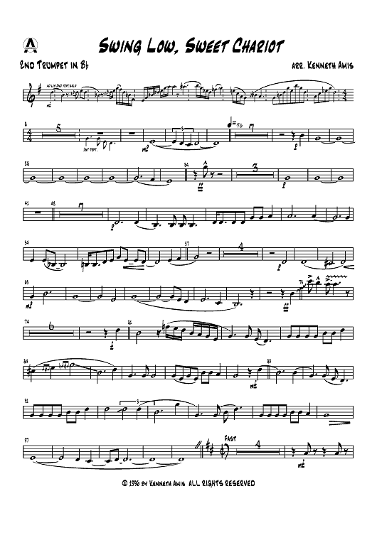 Digital Sheet Music for Swing Low, Sweet Chariot - Trumpet 2 in B-flat by Traditional, Kenneth Amis scored for Brass Quintet; id:403992