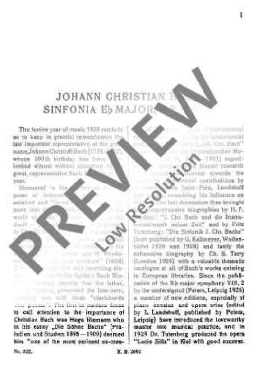 "Symphony Eb major - Full Score" Sheet Music by Johann Christian Bach