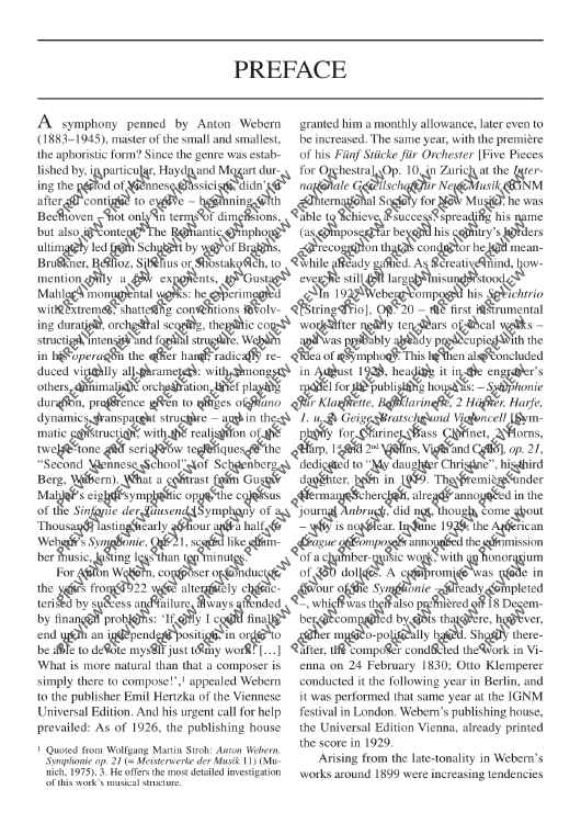 The Symphony op. 21 is the first major work that Webern composed in the technique of twelve-tone composition. It is now available for the first time in the Edition Eulenburg with a detailed foreword by Wolfgang Birtel.