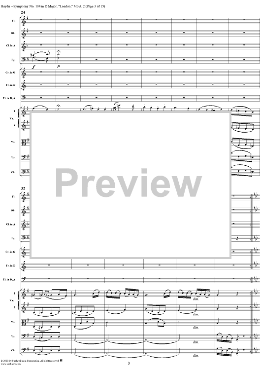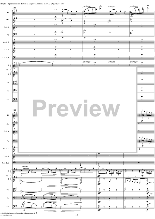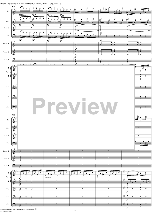 Digital Sheet Music for Symphony No. 104 in D Major ("London"), Movement 2 - Full Score by Franz Joseph Haydn scored for Orchestra; id:235900