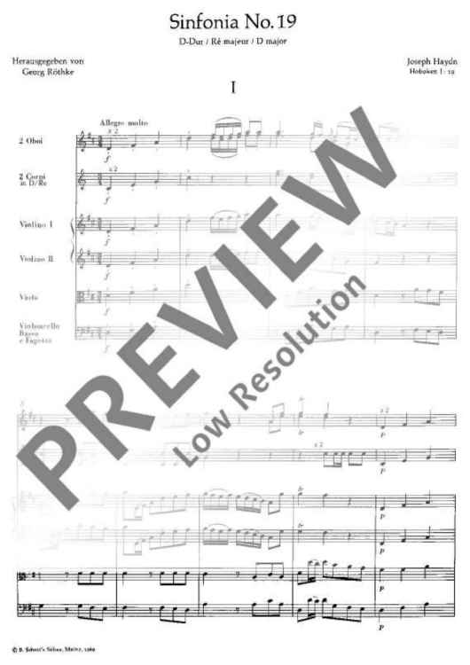 Digital Sheet Music for Symphony No. 19 D Major - Score by Joseph Haydn scored for Orchestra; id:483049