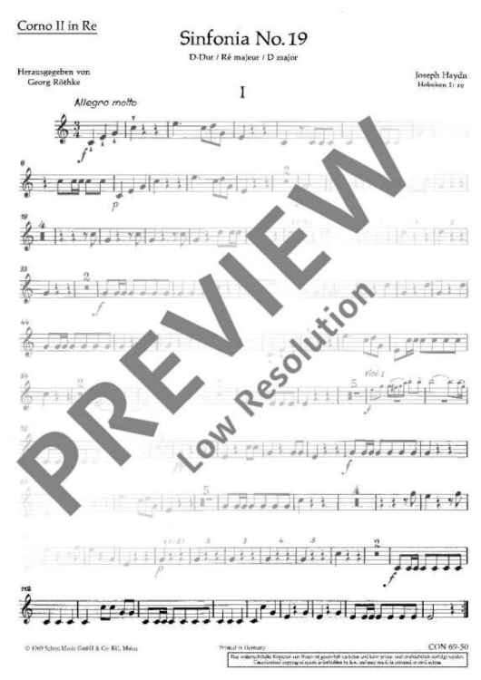 Digital Sheet Music for Symphony No. 19 D Major - Set of Parts by Joseph Haydn scored for Orchestra; id:491581