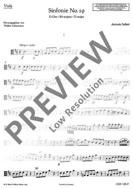 "Symphony No. 19 D Major - Viola" Sheet Music by Antonio Salieri