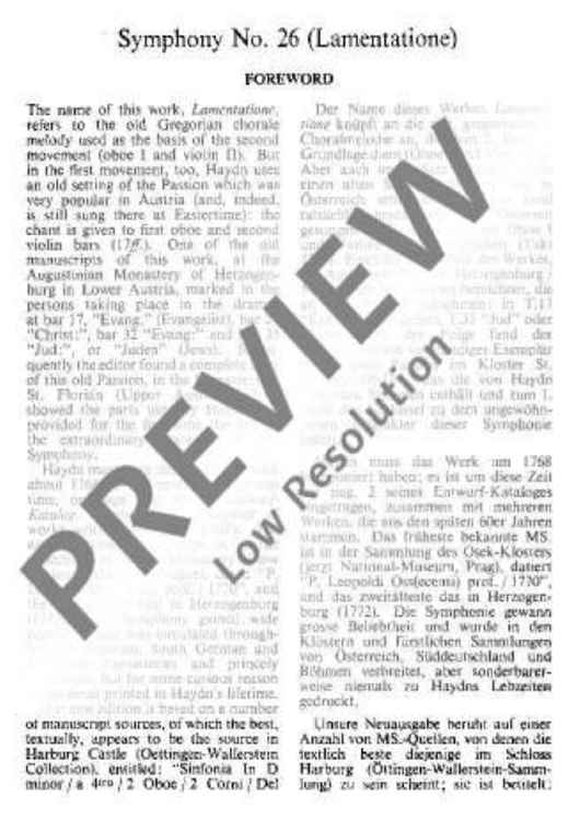 "Symphony No. 26 D minor - Full Score" Sheet Music by Joseph Haydn
