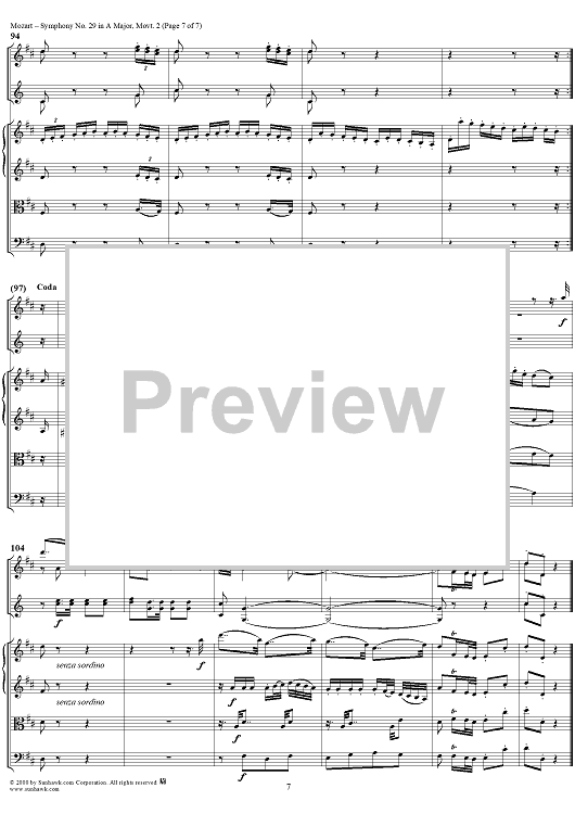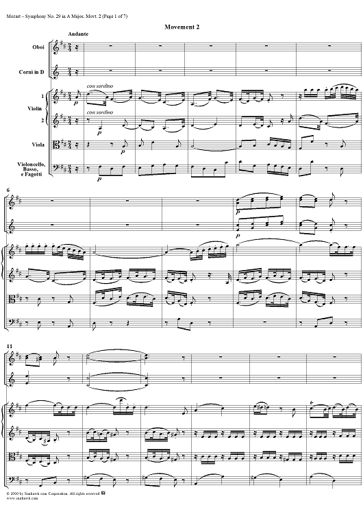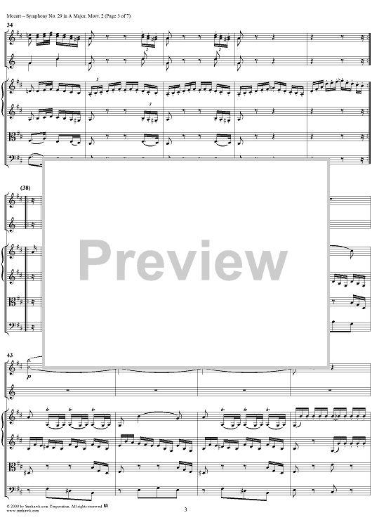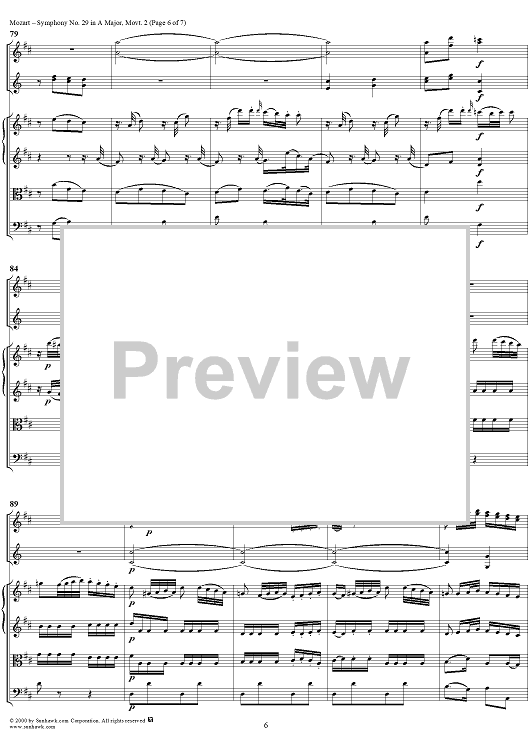 Digital Sheet Music for Symphony No. 29 in A Major, Movement 2 - Full Score by Wolfgang Amadeus Mozart scored for Orchestra; id:234567