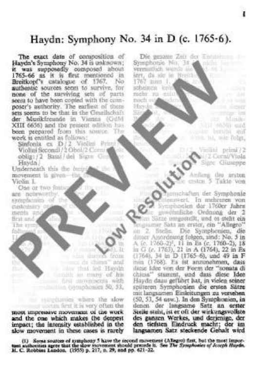 "Symphony No. 34 D major - Full Score" Sheet Music by Joseph Haydn