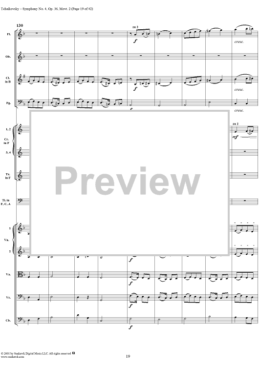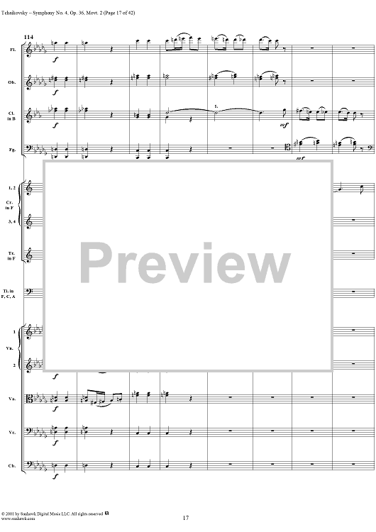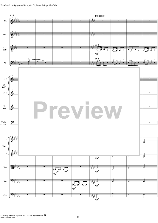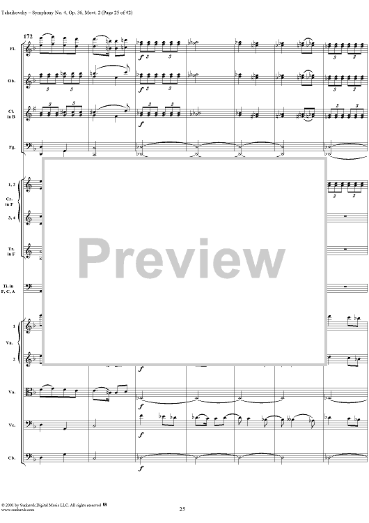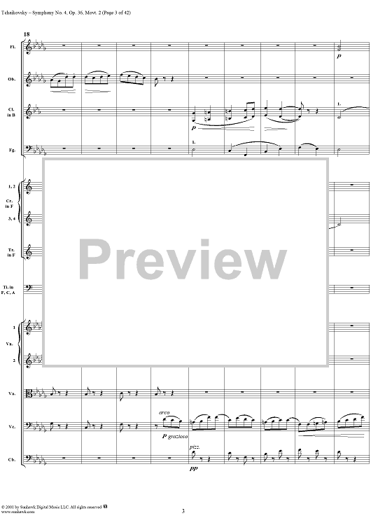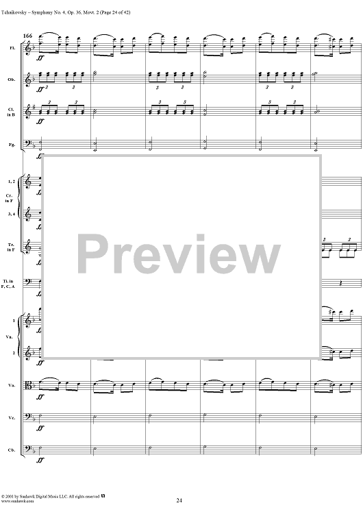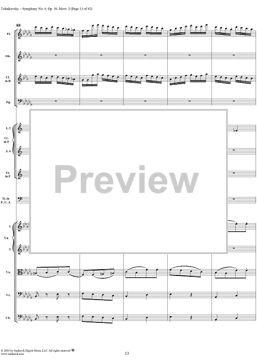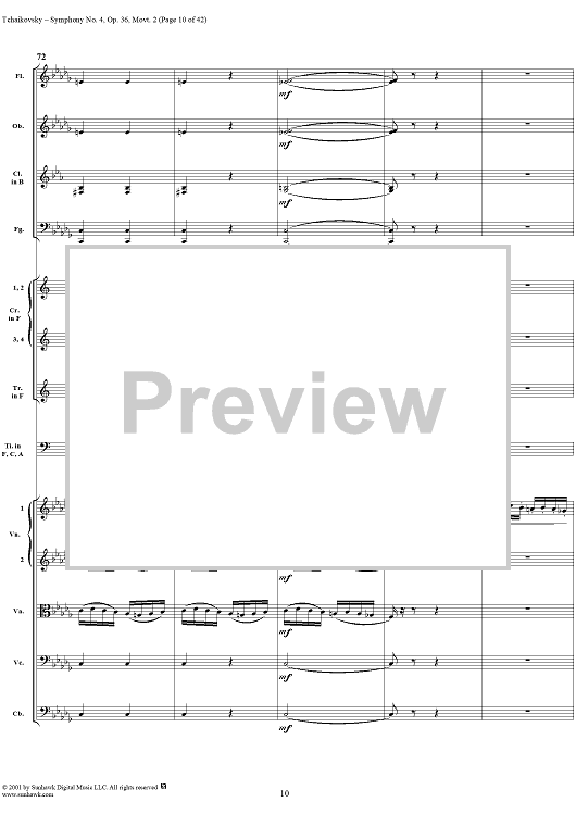 Digital Sheet Music for Symphony No. 4 in F minor (f-moll). Movement II by Peter Ilyich Tchaikovsky scored for Full Score; id:259595