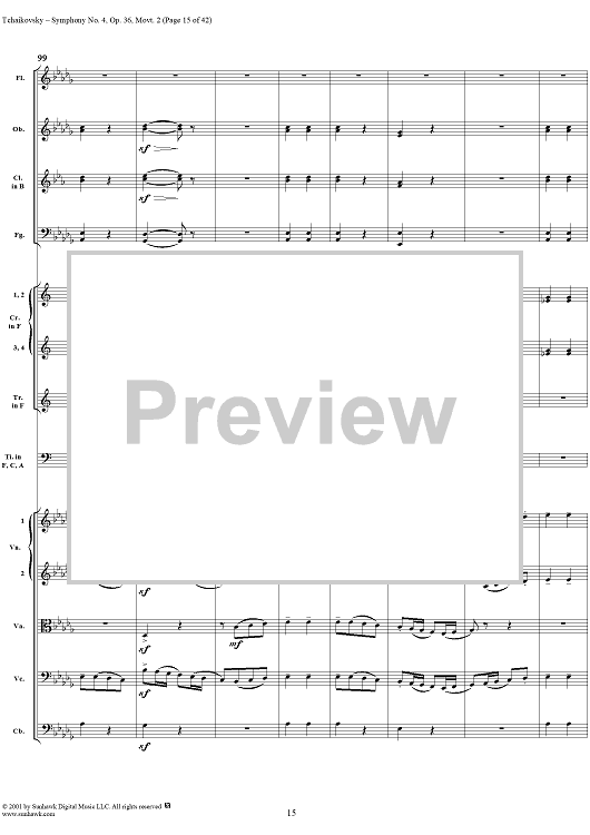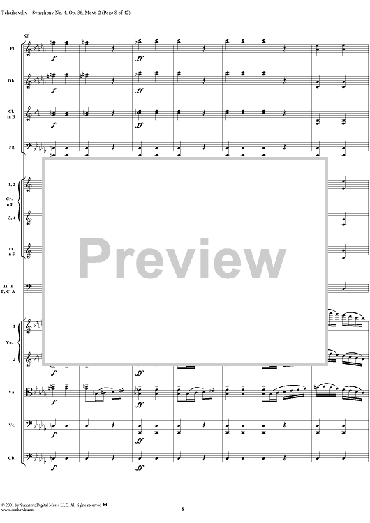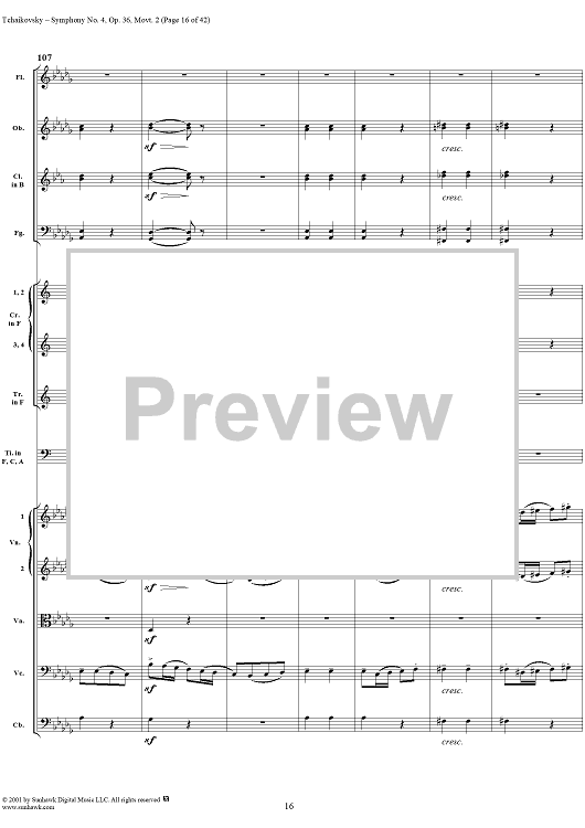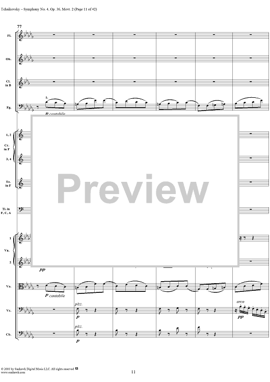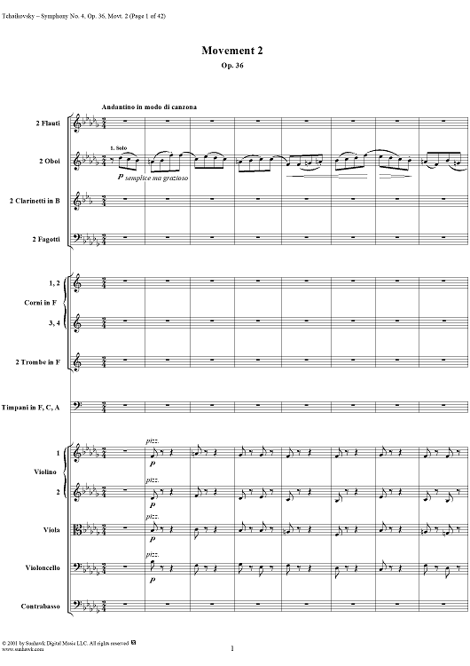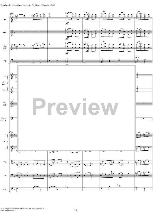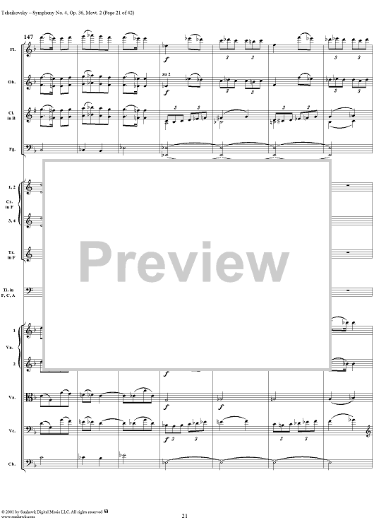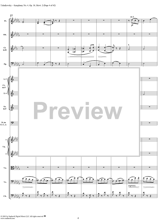 Digital Sheet Music for Symphony No. 4 in F minor (f-moll). Movement II by Peter Ilyich Tchaikovsky scored for Full Score; id:259595