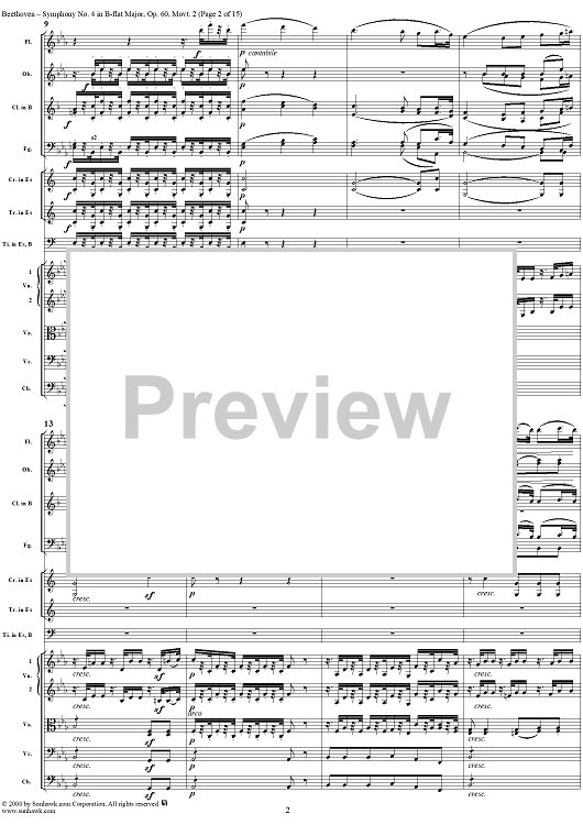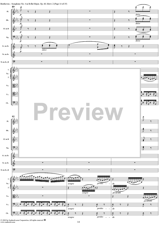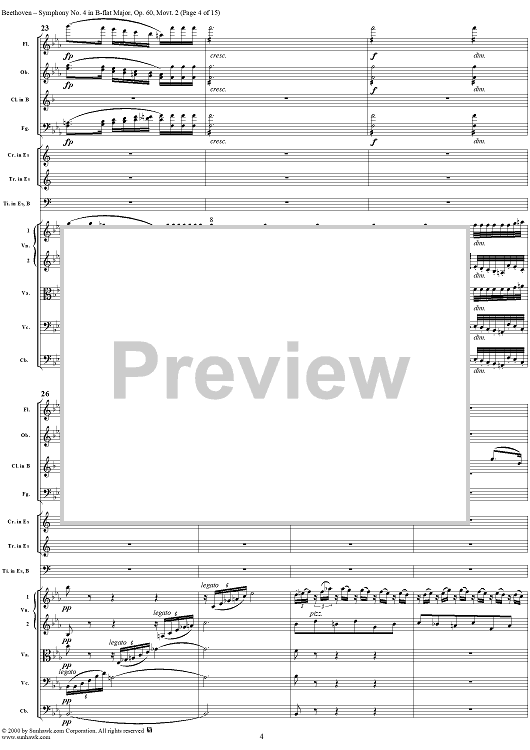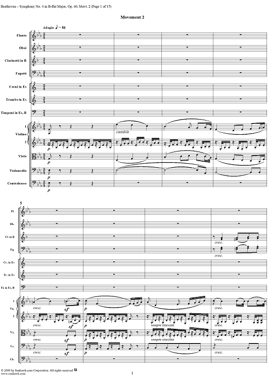 Digital Sheet Music for Symphony No. 4, Movement 2 - Full Score by Ludwig van Beethoven scored for Orchestra; id:241216