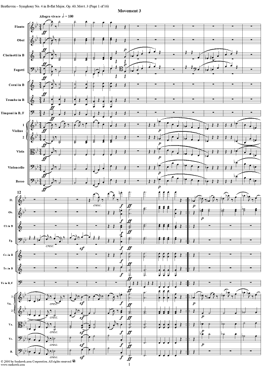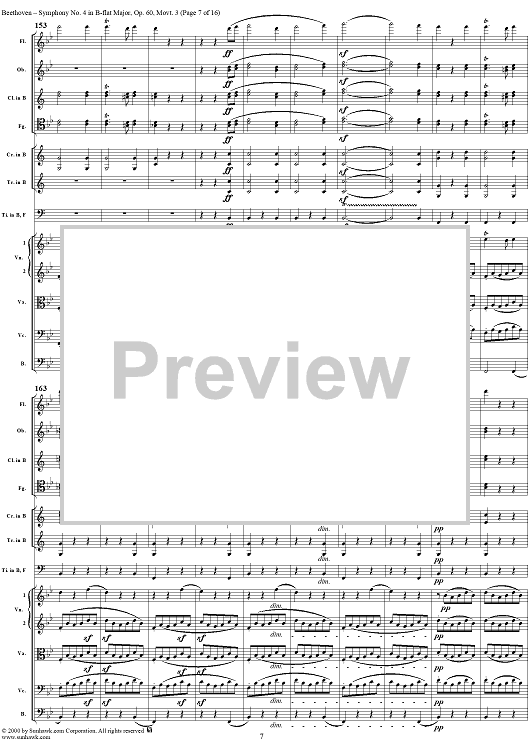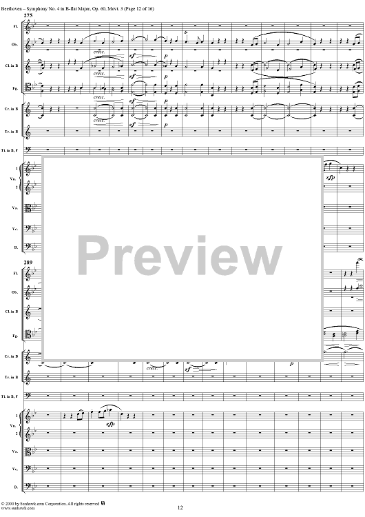 Digital Sheet Music for Symphony No. 4, Movement 3 - Full Score by Ludwig van Beethoven scored for Orchestra; id:275531