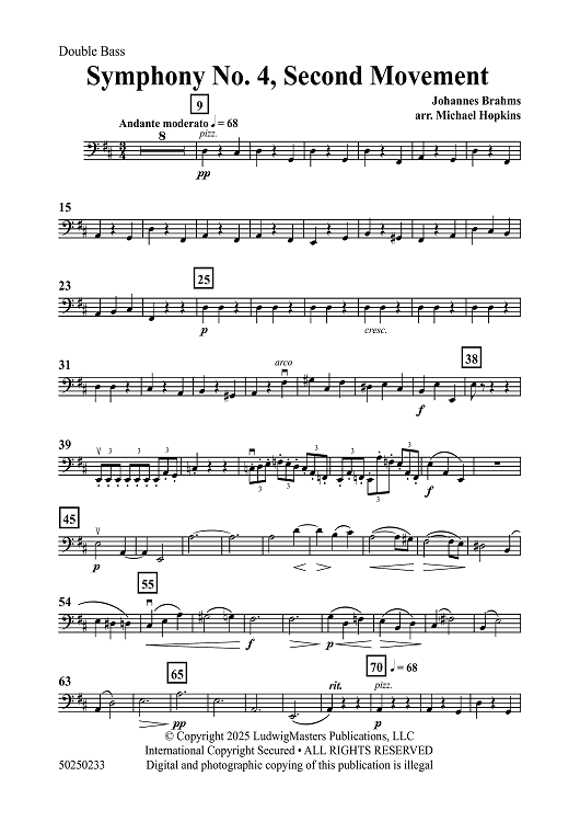 Digital Sheet Music for Symphony No. 4, Second Movement - Double Bass by Johannes Brahms, Michael Hopkins scored for Orchestra; id:507467