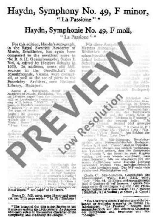 "Symphony No. 49 F minor - Full Score" Sheet Music by Joseph Haydn